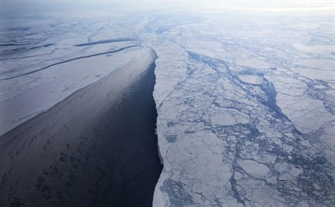 | Une photo prise par la Nasa au large du Groenlad en mars 2017 pour étudier la glace et l'océan artctique. |