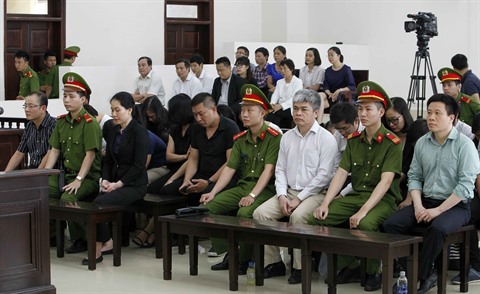 | Hà Van Tham (1er à droite) et d'autres accusés lors du procès en appel. |