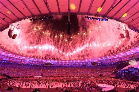 | Feu d'artifice lors de la cérémonie d'ouverture des JO le 5 août au stade Maracana à Rio de Janeiro. |