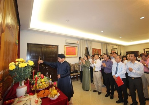| Cérémonie d'offrande d'encens aux rois fondateurs Hùng en Malaisie. |