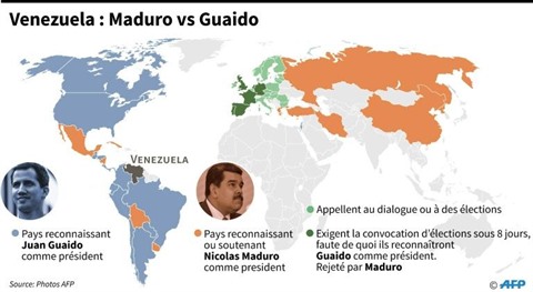 Le pays pétrolier, ruiné après avoir été le plus riche d'Amérique latine, est au centre de l'échiquier diplomatique international: du côté de Guaido se rangent notamment les États-Unis, une grande partie de l'Europe et de l'Amérique latine, tandis que Maduro est soutenu par la Russie, la Chine, la Corée du Nord, la Turquie ou encore Cuba. M. Bolton a une nouvelle fois appelé lundi 28 janvier "tous les pays responsables" à reconnaître immédiatement M. Guaido comme président par intérim.