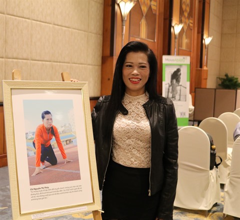 | L'athlète Nguyên Thi Thuy à côté de sa photo. |