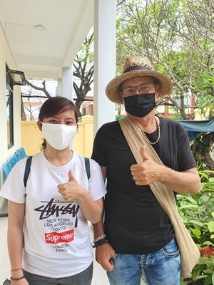 | L'Allemand Maier Marco (droite) est heureux lorsqu'il bénéficie des aides d'une employée du centre d’assistance aux touristes de Dà Nang. |