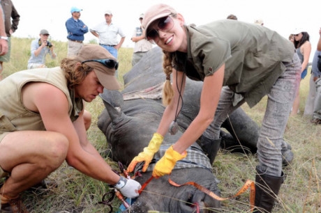 | La docteur Lorinda Hern en mission dans le cadre du projet Rescue Rhino en Afrique du Sud. |