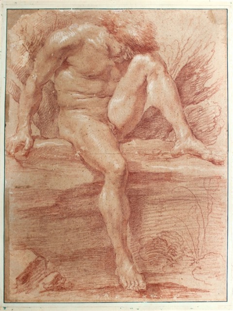 Gian Lorenzo Bernini (1598-1680), dit Le Bernin, est notamment célèbre pour ses statues de la célèbre fontaine de la place Navone à Rome, dont le grand nu masculin du dessin peut-être rapproché.