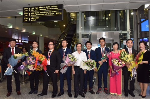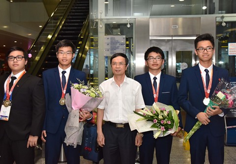 | Accueil de l’équipe vietnamienne lors des 49es Olympiades internationales de chimie, le 15 juillet à l'aéroport de Nôi Bài, à Hanoï. |