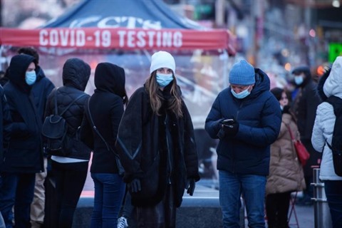 | Des personnes font la queue à Time Square pour se faire dépister au COVID-19, le 20 décembre à New York. |