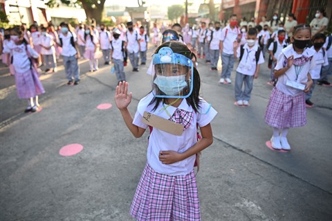 | Des écoliers lors d'une cérémonie avant d'entrer en cours dans la banlieue de Manille le 6 décembre. |