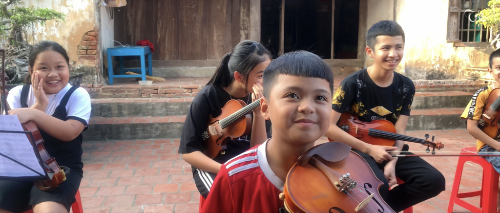 | Lors d'une formation en musique aux jeunes du village de Then à Bac Giang. |