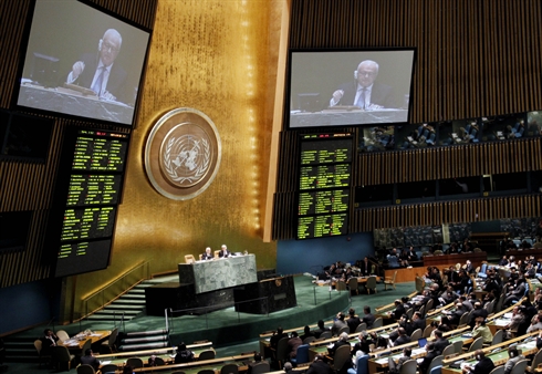 | Session de vote d'une résolution sur la Syrie de l’Assemblée générale de l’ONU, le 16 février à New York. Photo : XINHUA/VNA/CVN |