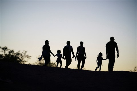 | Des familles haïtiennes traversent la frontière vers El Paso, au Texas, vues de Ciudad Juárez, au Mexique, le 17 mai 2022. |