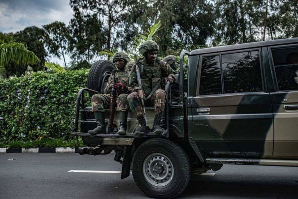 | Des éléments de la rébellion du M23 montent la garde à l'extérieur d'un hôtel à Goma, dans l'Est de la République démocratique du Congo (RDC), le 13 juin 2025. |