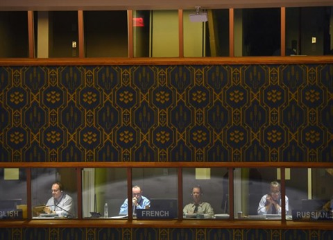 | Des interprètes, officiant lors d'une réunion du Conseil de sécurité des Nations unies, le 24 octobre à New-York. |
