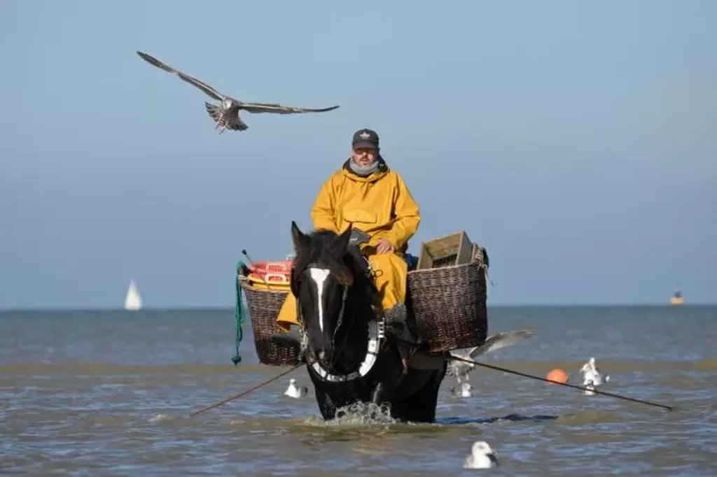 Dans la commune belge d'Oostduinkerke, sur la mer du Nord, on pratique toujours la pêche aux crevettes à cheval.