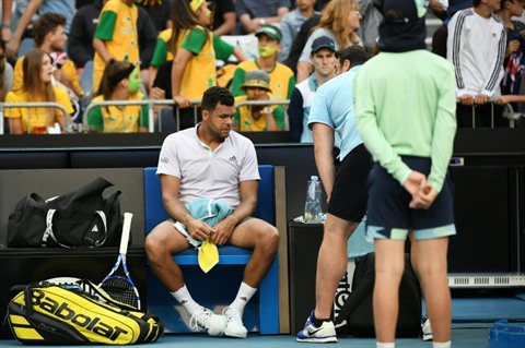 | La détresse de Jo-Wilfried Tsonga contraint à l'abandon face à l'Australien Alexei Popyrin à Melbourne, le 21 janvier. |
