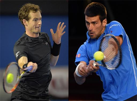 | Photomontage de l'Écossais Andy Murray (gauche) et du Serbe Novak Djokovic, lors de leurs demi-finales respectives à l'Open d'Australie, le 30 janvier. |