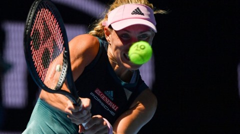 | L'Allemande Angelique Kerber éliminée en huitièmes de finale de l'Open d'Australie par l'Américaine Danielle Collins, à Melbourne, le 20 janvier. |