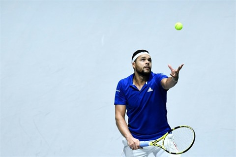| Jo-Wilfried Tsonga lors de la Coupe Davis, à Madrid, le 21 novembre 2019. |