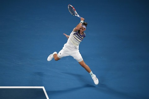 | L'Australien Dominic Thiem lors de son quart de finale de l'Open d'Australie face à l'Espagnol Rafael Nadal, à Melbourne, le 29 janvier. |