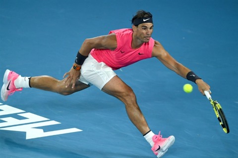 | L'Espagnol Rafael Nadal lors de son quart de finale de l'Open d'Australie face à l'Autrichien Dominic Thiem, à Melbourne, le 29 janvier. |