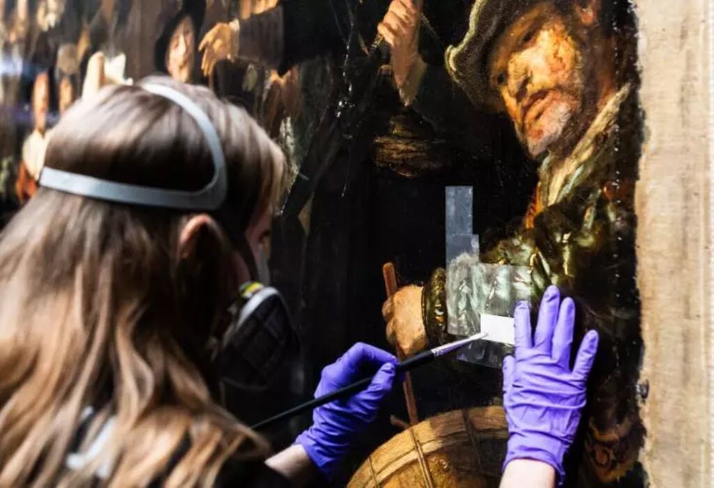 Une équipe de huit restaurateurs d'art a commencé de retirer minutieusement les couches de vernis du chef-d'œuvre du XVIIe siècle de Rembrandt, représentant une compagnie de la milice bourgeoise des mousquetaires d'Amsterdam.