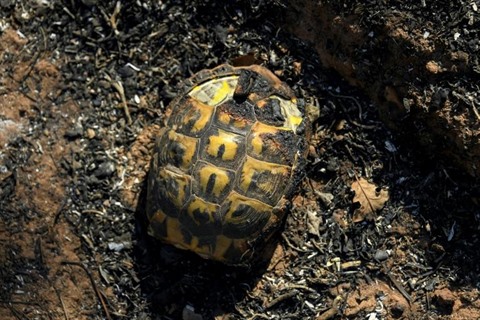 | Une tortue brûlée dans un feu de forêt, le 17 août à Gonfaron, dans le Var. |