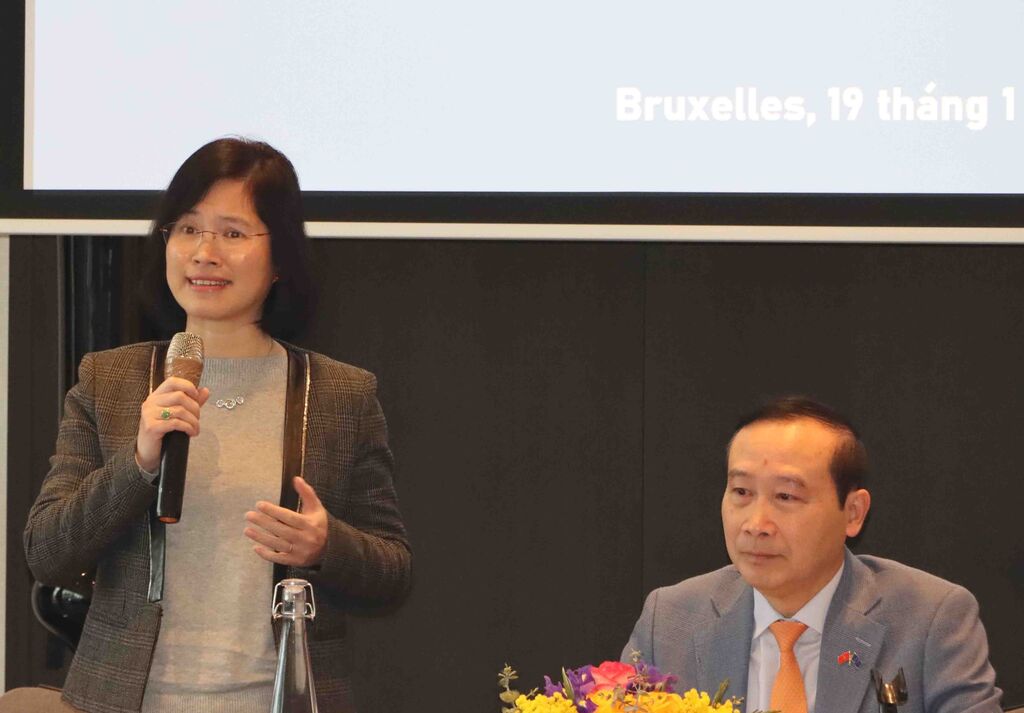 | Nguyên Thanh Phuong prend la parole lors d'une table ronde sur la promotion de la coopération en matière d'innovation et de transformation, le 19 janvier à Bruxelles. |