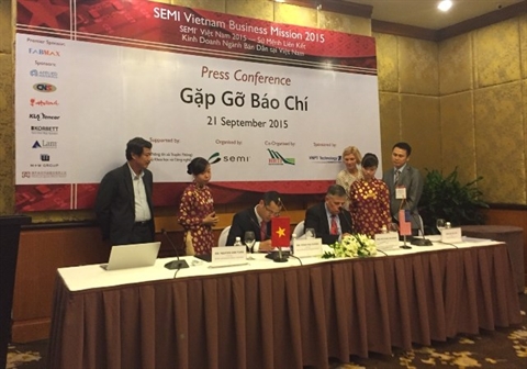 | Signature d'une convention de coopération entre le Comité de gestion de la zone des hautes technologies de Hoà Lac et SEMI, le 21 septembre à Hanoi. |