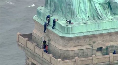 | Une femme a gravi la Statue de la Liberté à New York le 4 juillet. |