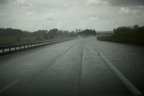 | Des voitures circulent sur l'autoroute A71 pendant un violent orage, le 8 juin à Epineul-Le-Fleuriel, dans le Cher. |