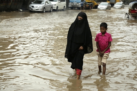 | Les inondations le 13 mai dans une rue de Dhaka, au Bangladesh. |