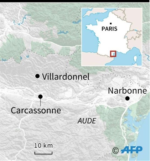 | Carte de l'Aude touchée par des inondations localisant Villardonnel. |