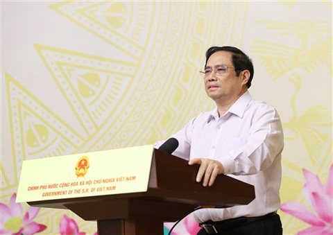 | Le Premier ministre Pham Minh Chinh prend la parole lors de la cérémonie de lancement du programme "Song và may tinh cho em", le 12 septembre à Hanoï. |