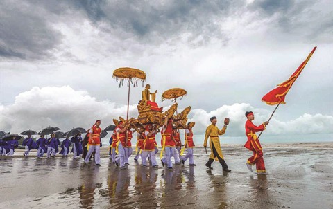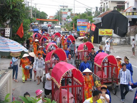 Le festival commence par une procession de palanquins pour accueillir les dieux tutélaires de la mer. Les palanquins sont transportés par de jeunes hommes le long de plusieurs rues et le long de la plage de Trà Cô avant de retourner à la maison commune.