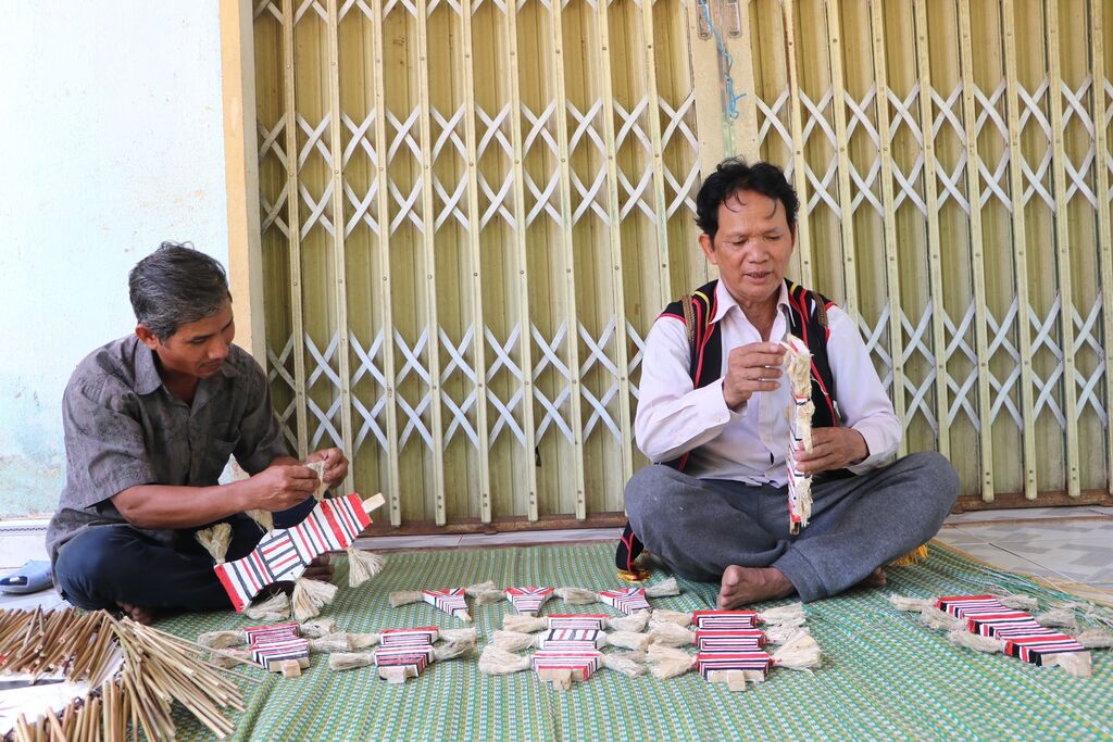 “Chez les Cor, une particularité dans la fabrication de ce mât rituel est l’usage systématique de nombres impairs, par exemple 3, 5, 7, 9, pour les décorations. Car, selon leurs croyances, les nombres impairs sont porteurs de chance”, explique l’artisan Hô Van Duong, de la commune de Son Trà.