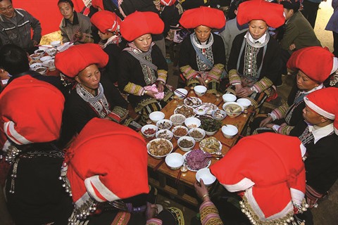La famille du marié est chargée de préparer le grand banquet du mariage qui réunira presque tous les villageois. Parmi les aliments, on compte des cochons, des poulets, de l’alcool. Selon les coutumes, les Dao rouges de Ta Phin considèrent le travail de chaque famille de la commune comme le leur.