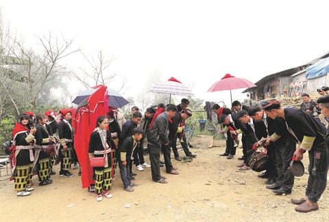 Le mariage de Ly Lao Ta et Phàn Lo Mây dans la commune de Ta Phin, province de Lào Cai, a préservé les rituels traditionnels d’une cérémonie de mariage des Dao rouges, affichant les valeurs d’humanité et de solidarité communautaire, transmises de génération en génération. Quelques mois avant le mariage, en choisissant un jour propice, les parents de Ly Lao Ta se rend chez Phàn Lo Mây.