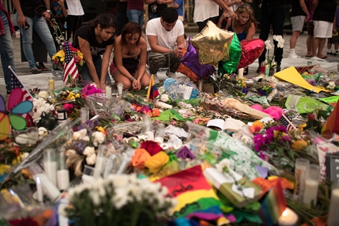| Plusieurs personnes se sont réunies devant le Dr. Phillips Center for the Performing Arts, mardi 14 juin à Orlando, pour rendre leurs hommages aux victimes du Pulse. |