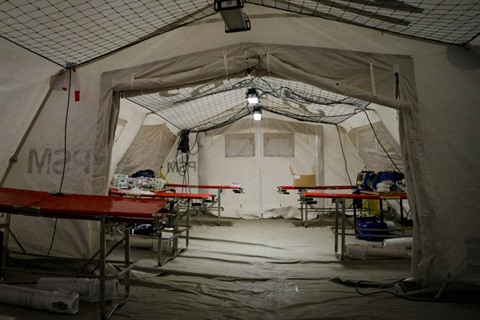 | Un hôpital de campagne installé le 3 avril sur l'aéroport de Orly. |