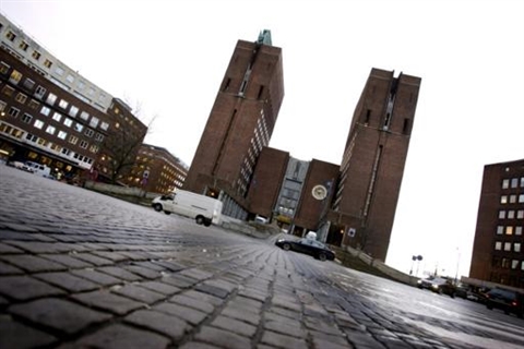 | Photo prise le 6 décembre 2007 de la mairie d'Oslo |