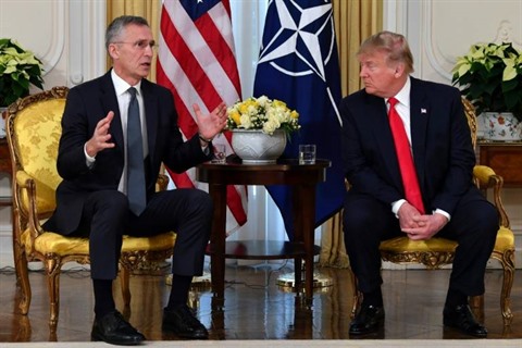 | Le président américain Donald Trump (droite) et le secrétaire général de l'OTAN, Jens Stoltenberg, le 3 décembre à Londres. |