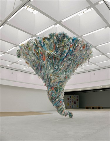 Dans la série Océan - Champ - Tornade, le point le plus impressionnant est la minutie de chaque détail. Les artistes ont assemblé des dizaines de milliers d'objets en plastique usagés pour créer une photo panoramique de la nature. Chaque pli de sacs en plastique crée également des lignes très attrayantes visuellement sur la surface de l’œuvre.