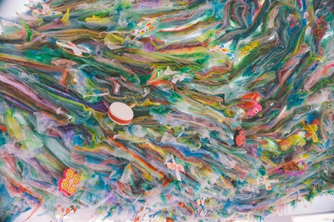 | L’œuvre Đại dương (Océan) présentée à l’exposition "La planète plastique" à Hanoï. |