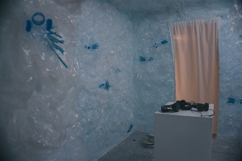 Dès les premiers pas dans l'espace d'exposition intitulée "Hành tinh nhua" (La planète plastique) organisée par un groupe d'artistes de l’entreprise sociale Tòhe du 21 juin au 18 août au Centre Vincom pour l'art contemporain (VCCA), les spectateurs se sentent perdus dans un monde fantastique. Un monde absurde dans lequel tous les êtres vivants, toutes les choses et tous les phénomènes naturels sont constitués de "molécules" plastiques.