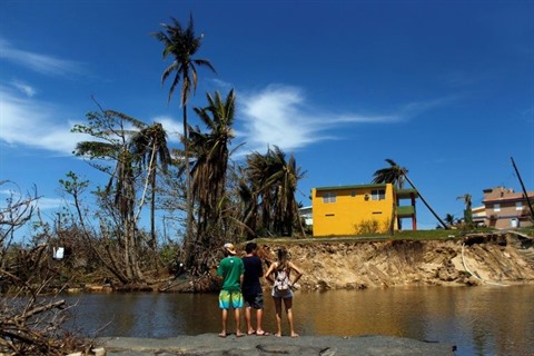 Trois semaines après le passage de l'ouragan Maria, qui a frappé l'île en catégorie 4, 5.700 personnes vivent encore dans des abris, et la plupart de l'île est encore privée d'eau courante et d'électricité.