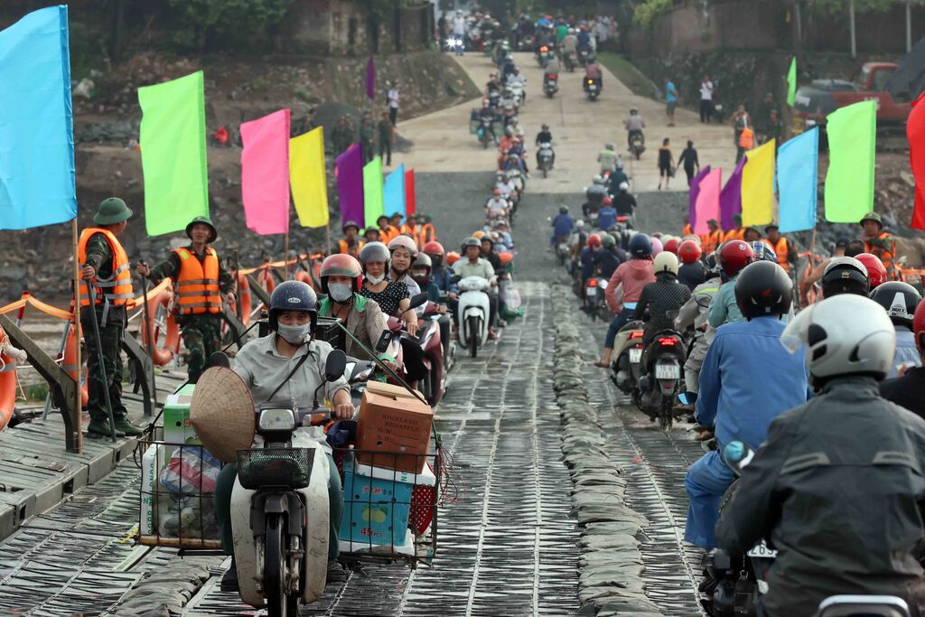 Vingt jours après la catastrophe, le 29 septembre, un pont flottant PMP de 60 tonnes situé à environ 400 m en aval du pont Phong Châu qui s'est effondré à cause du typhon N°3, a été installé.