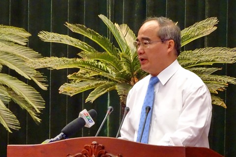 | Le secrétaire du Comité municipal du Parti Nguyên Thiên Nhân prend la parole dans la 16e conférence de l’organisation du Parti de Hô Chi Minh-Ville (Xe exercice). |