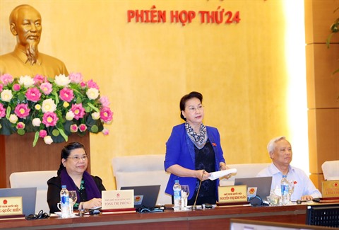 | Nguyên Thi Kim Ngân prononce le discours d'ouverture de la 24e session du Comité permanent de l'AN de la XIVe législature, le 14 mai à Hanoï. |