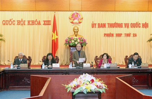 | Nguyên Sinh Hùng (centre) prend la parole lors de la 24e session du Comité permanent de l'AN, le 13 janvier. |