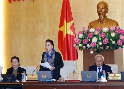 | La présidente de l’Assemblée nationale Nguyên Thi Kim Ngân (debout) prend la parole lors de la 29e réunion |